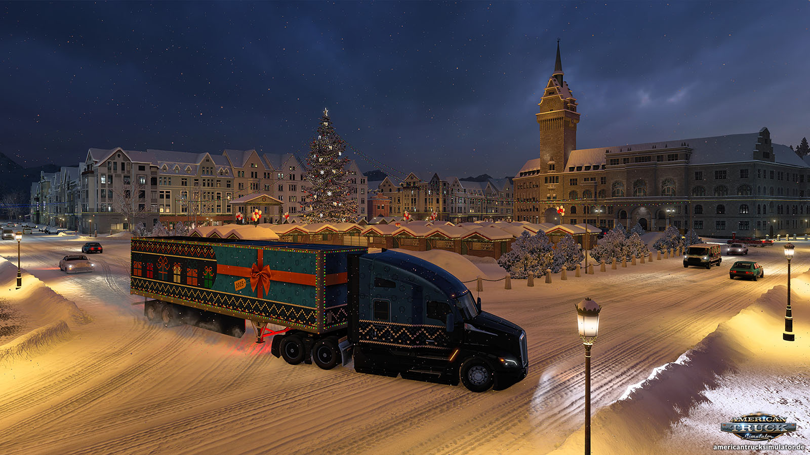 Im Zuge der Veröffentlichung des Louisiana-DLC läuft ja bereits ein World of Trucks-Event, mit dem immer näher kommenden Weihnachtsfest startet nun aber auch das Winterland in seine nächste Runde. Wie schon im vergangenen Jahr, gibt es insgesamt fünf verschiedene Depots im Winterland, welches Du über ein Portal erreichen kannst, wenn Du vorher einen passenden Auftrag angenommen hast. Diese kleine separate Welt hat dabei einige Upgrades bekommen, insbesondere gibt es dort jetzt auch Straßenverkehr.