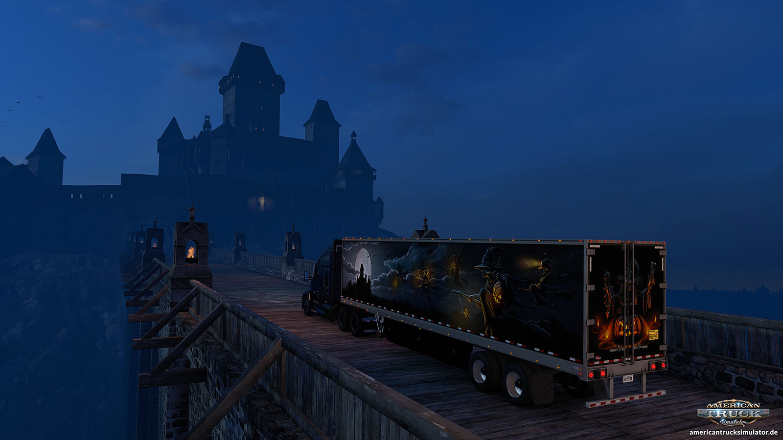 Du bekommst die Aufgabe, spielübergreifend (ATS und Euro Truck Simulator 2) insgesamt 15 Halloween-Lieferungen abzuschließen. Darunter gehören mindestens drei Fahrten zum Schloss Brackenhelm und drei vom Schloss zurück. Frachtarten wie Halloween-Süßigkeiten, Kostüme, Kräuter & Gewürze oder Handwerksarbeiten gilt es zu transportieren – mit besonderen Herausforderungen in Gelände, Sicht und Atmosphäre.