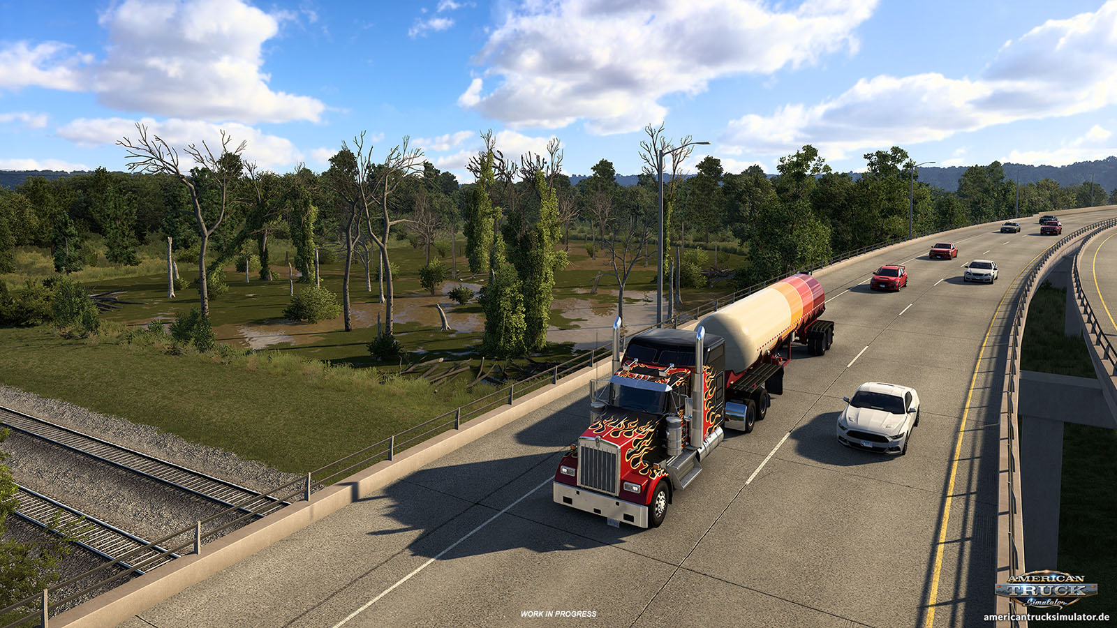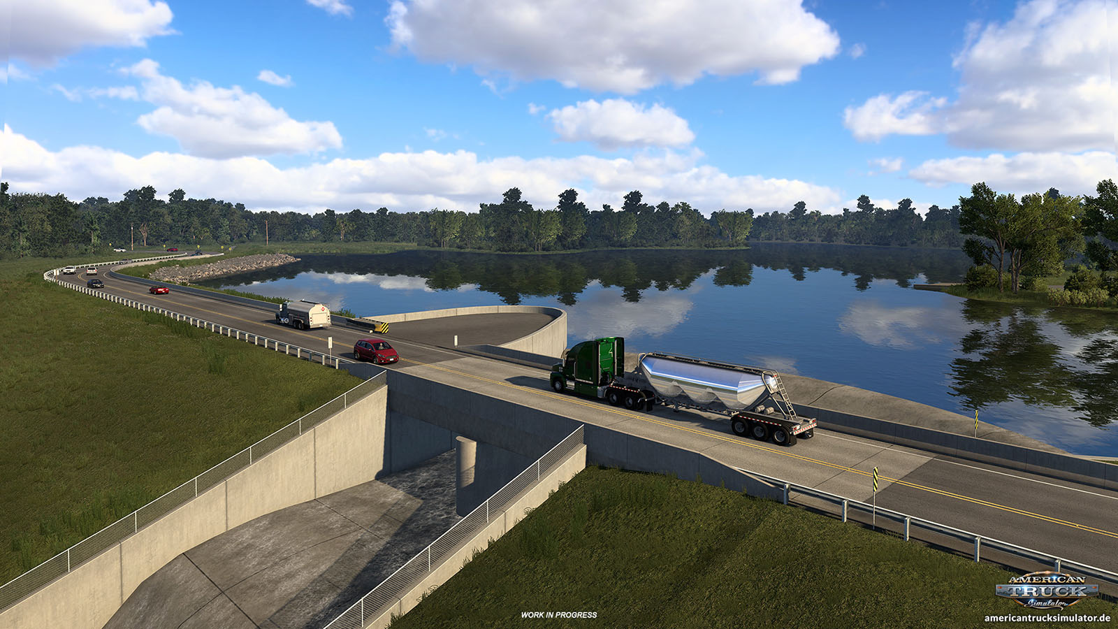 Insgesamt spiegelt der Illinois-DLC damit die reiche Vielfalt der Gewässer des Bundesstaates wider: Von städtischer See-Atmosphäre über große Reservoirs bis hin zu wilden, naturnahen Flusslandschaften – all diese Elemente lassen die Straßennetz-Erkundung abwechslungsreicher und atmosphärisch dichter wirken.